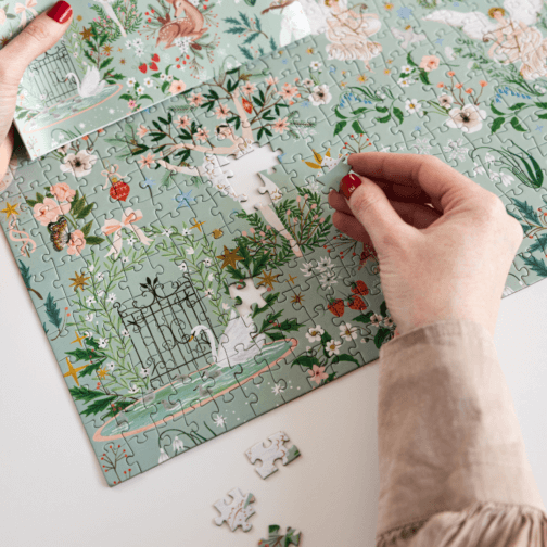 Unwrap the joy of puzzling this Christmas with Bespoke Letterpress’s limited edition Enchanted Ballet Jigsaw Puzzle. This stunning holiday design by Australian artist Meghann Rader is perfect for getting into the festive spirit.