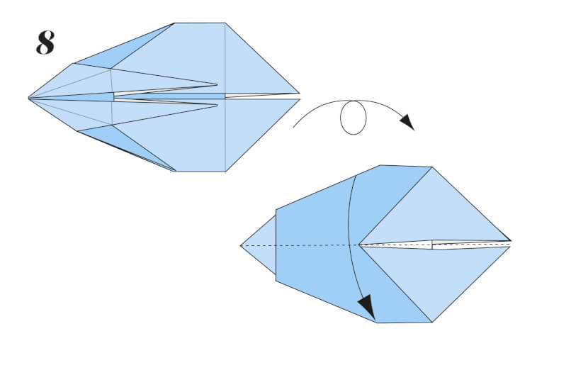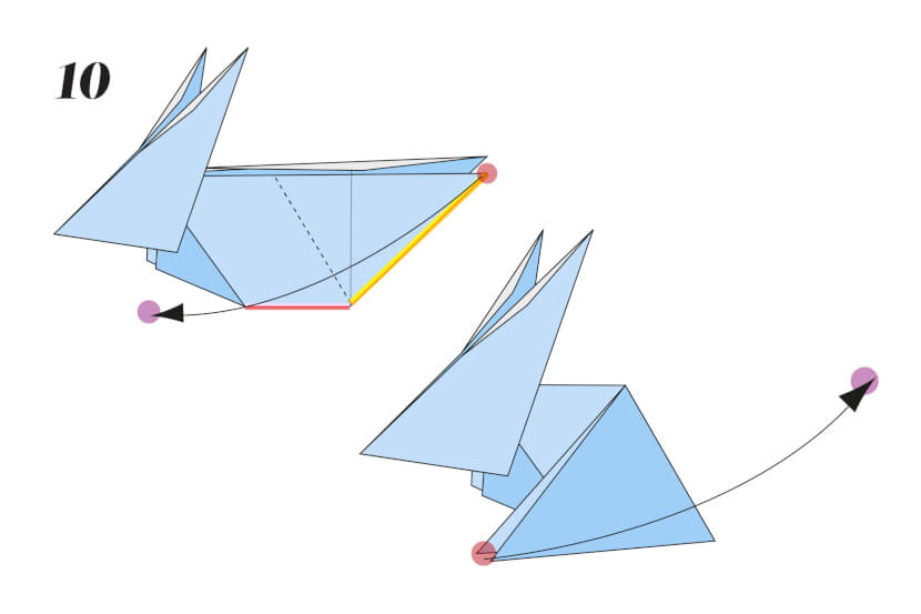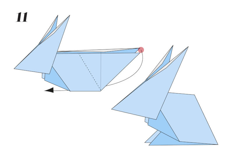 11 Using the crease you’ve just made, push the folds inwards to invert and form the back of the rabbit.