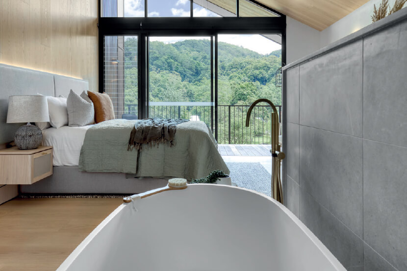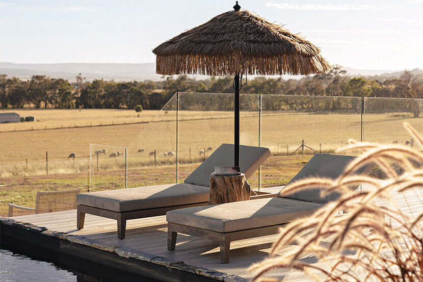 Set on 33 acres of rolling countryside, just 15 minutes from Mudgee, Zensi Retreat offers a tranquil escape for all kinds of travellers. The luxury accommodations include The Villa, perfect for two, with flowing, curvaceous interiors, an indoor dry heat sauna, a spacious round bath, and an outdoor pool that invites relaxation with expansive views. For larger groups, Zensi House comfortably sleeps up to ten guests, blending raw, earthy materials with high-end design, offering cosy nights by the indoor wood fireplace and sunny days spent by the outdoor pool.