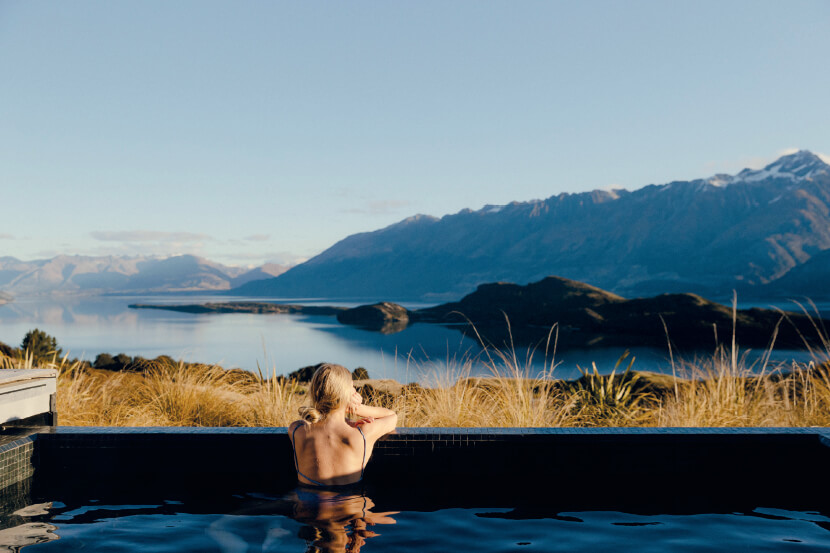 From 180-degree clifftop views to the Japanese-style spa overlooking the glittering waters of Tasman Bay, Split Apple Retreat offers the ultimate in seclusion, indulgence, and exclusivity. There are just three luxury suites at Split Apple, all with private decks and fragrant gardens, and scattered with Southeast Asian artefacts gathered on the owners’ travels. Additional facilities include an infrared sauna, steam room, yoga pavilion, meditation theatre with reclining seats, and an onsen hot bath.